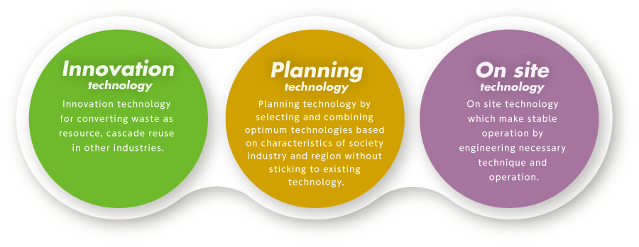 To recognize that the environment is a valuable resource for all living things on earth and humanity, so we aim to create value of biomass through innovation harmony, and contribute to global environmental preservation. Then, we will connect a network with customers, local production and consumption, and aim at living in harmony with nature, aiming to build a recycling-oriented society.