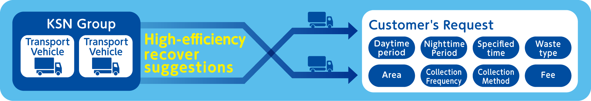 We offer new solutions such as high-performance recovery using the most benefit from the KSN group ownership license (industrial waste, general waste from business activities.)