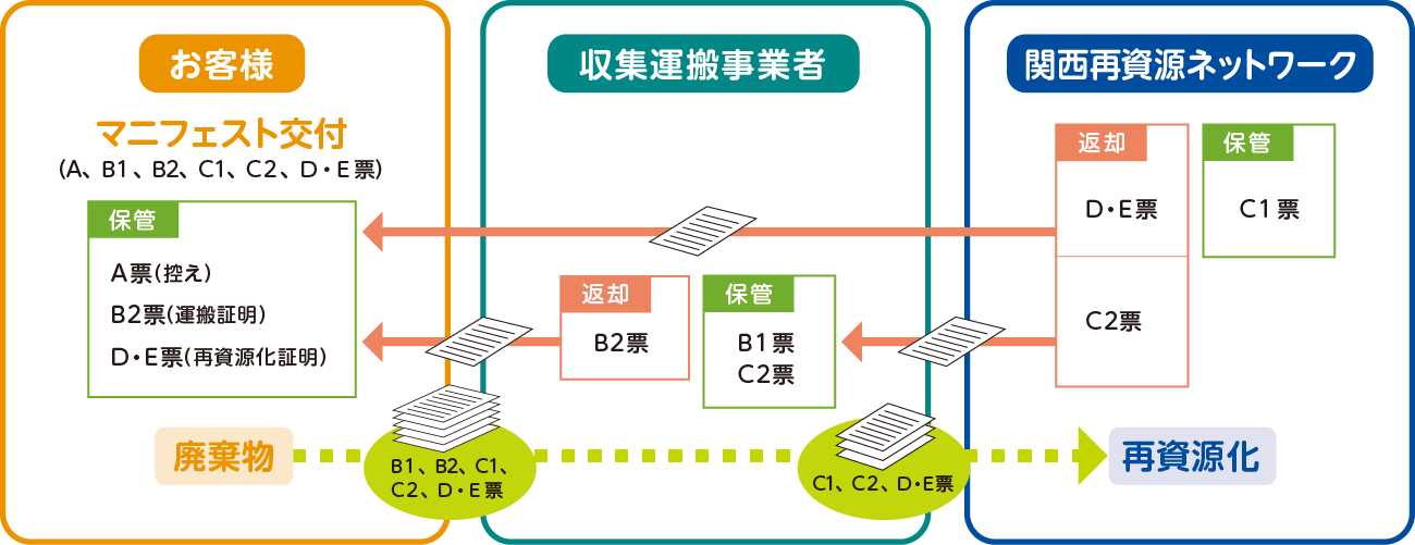 お客様からの廃棄物を、より安心・より安全・より適正に再資源化処理するため、産業廃棄物のみならず、一般廃棄物にもマニフェストを運用しています。